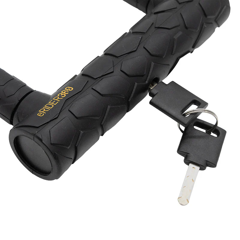 Ein sehr starkes und kompaktes Schloss, das aufgrund seines Herstellungsmaterials sehr sicher ist. Es verfügt über eine Fahrrad- und Rollerhalterung, wodurch der Transport erleichtert und komfortabler wird.