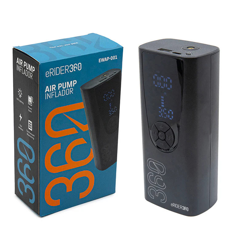 El Inflador Eléctrico Portátil AIR-001 es una herramienta esencial para quienes buscan mantener la presión adecuada de sus neumáticos y contar con energía para sus dispositivos electrónicos en cualquier lugar. Este innovador dispositivo no solo actúa como un potente inflador, capaz de alcanzar hasta 150 PSI, sino que también funciona como un práctico banco de energía y una linterna LED, convirtiéndose en el compañero ideal para emergencias en carretera y actividades al aire libre. Su diseño compacto y multifuncional lo hace perfecto para llevar en el coche o en excursiones. Con una precisión de medición de 0,1 BAR, nuestro inflador eWheel AIR-001 garantiza inflados seguros y eficientes. Incluye todos los accesorios necesarios como un cable de carga, tubo de inflado y adaptadores. Diseñado para soportar temperaturas de -20 a 60 °C, este inflador es resistente y fiable en cualquier condición climática.