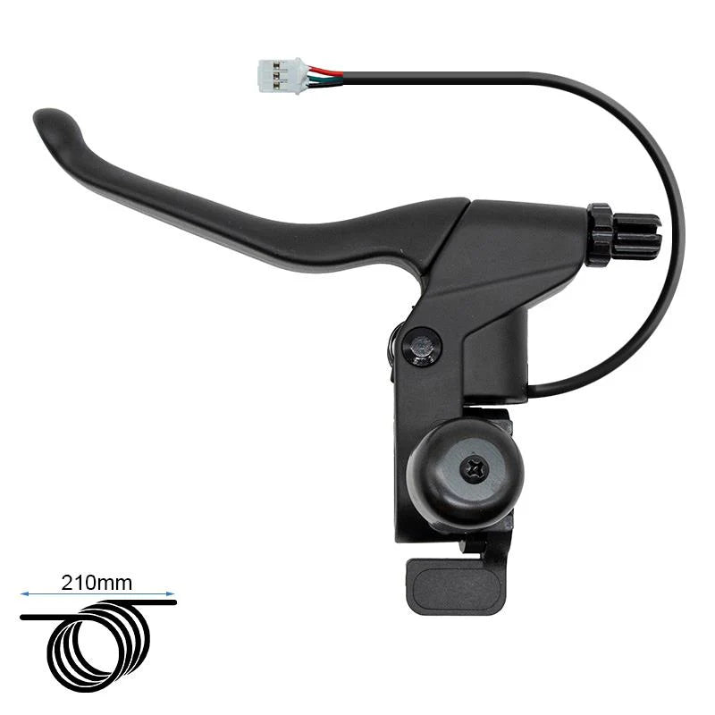 La maneta de freno para la Serie M de Cecotec combina diseño ergonómico y materiales resistentes para garantizar un frenado seguro y cómodo en cada trayecto. Pensada específicamente para estos modelos, su conector de 3 pines asegura una instalación sencilla y sin sorpresas. Esta pieza, clave para mantener el rendimiento óptimo del patinete, destaca por su durabilidad y facilidad de uso.