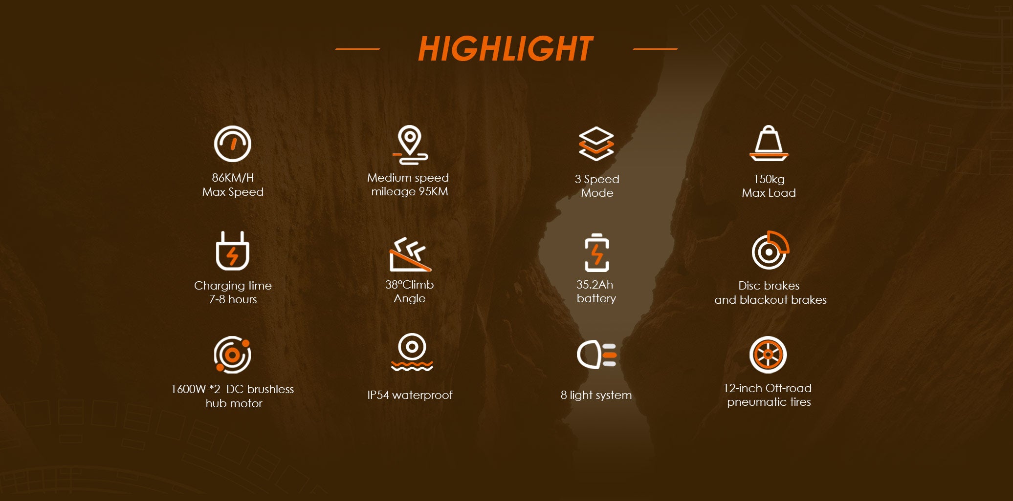 Velocidad máxima en cada modo38 km/h 70 km/h 86 km/h