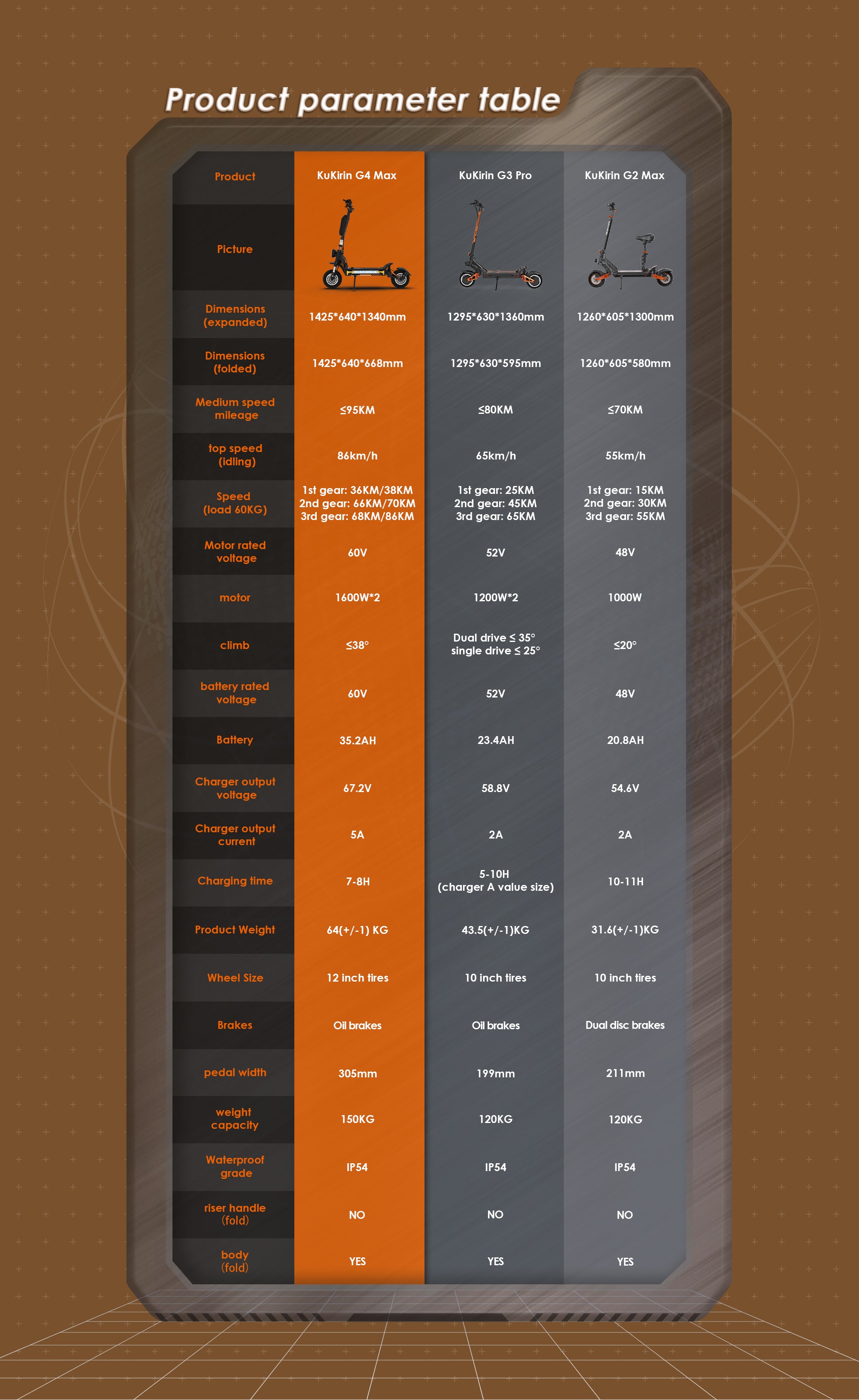 - Las demás especificaciones son valores típicos que se ofrecen solo como referencia. KUGOO se reserva el derecho de modificarlas sin previo aviso en caso de innovaciones tecnológicas.