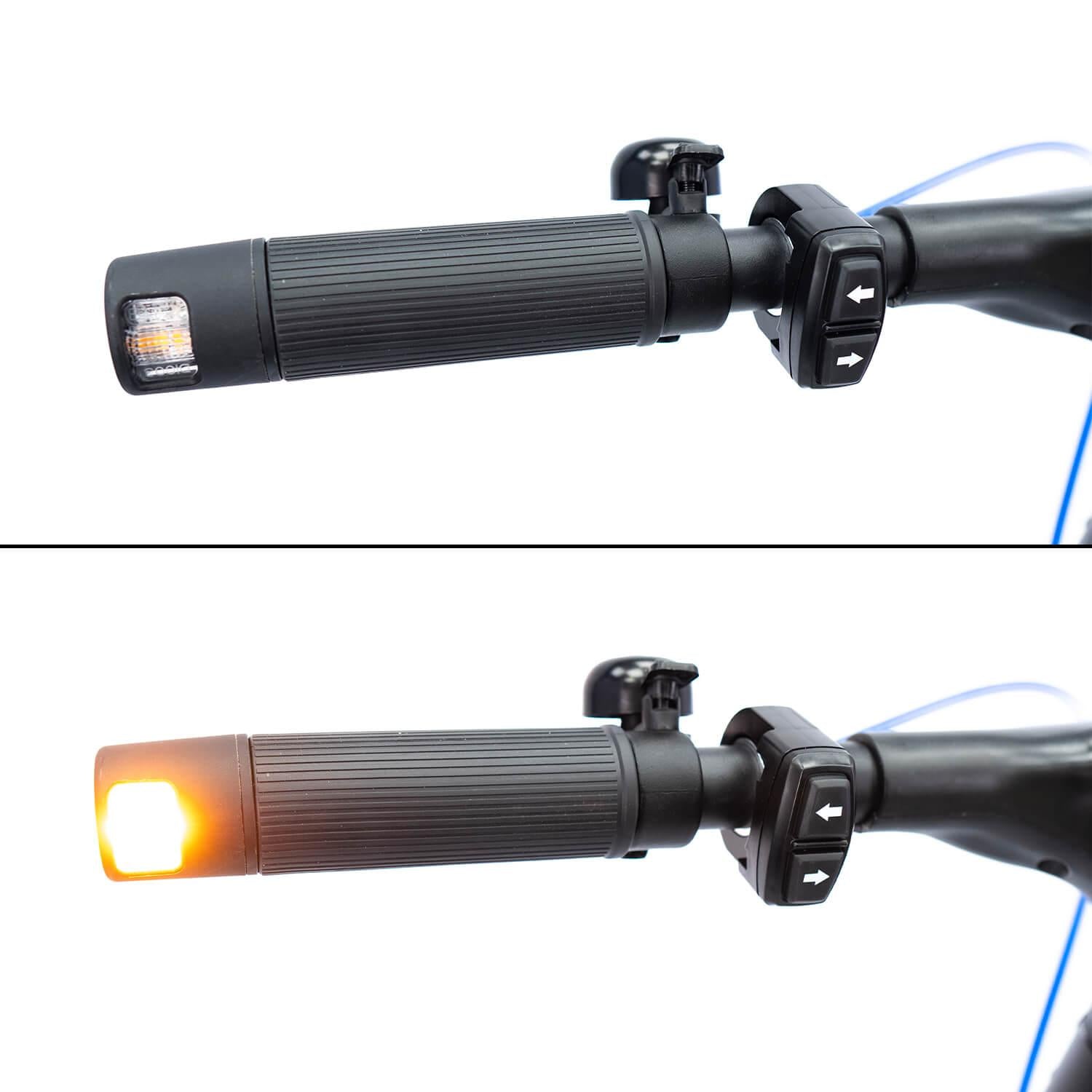 - Intermitentes integrados en cada extremo del manillar y en parte trasera.