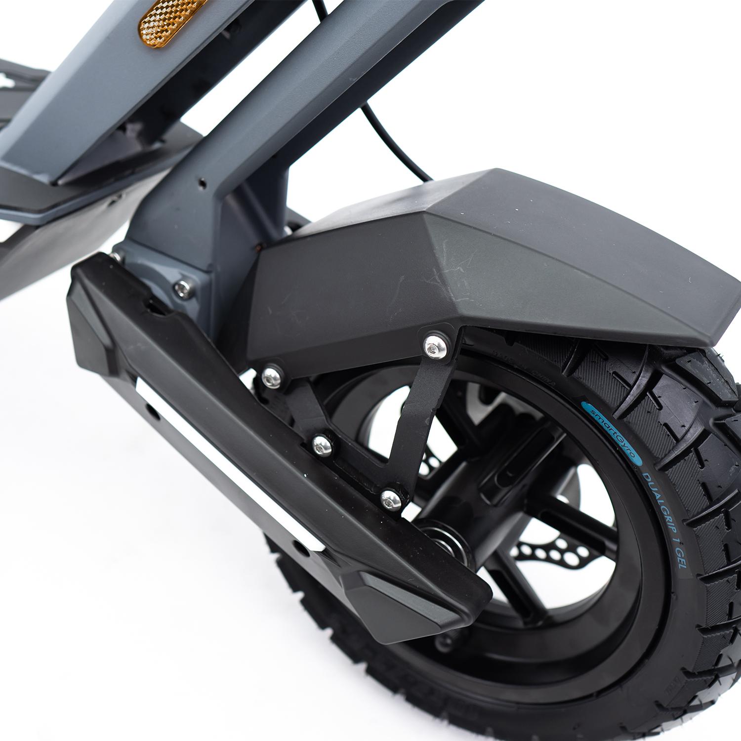 - Ruedas neumáticas Tubeless Dual Grip de 10" resistentes y estables preparadas para circular por todo tipo de terrenos.