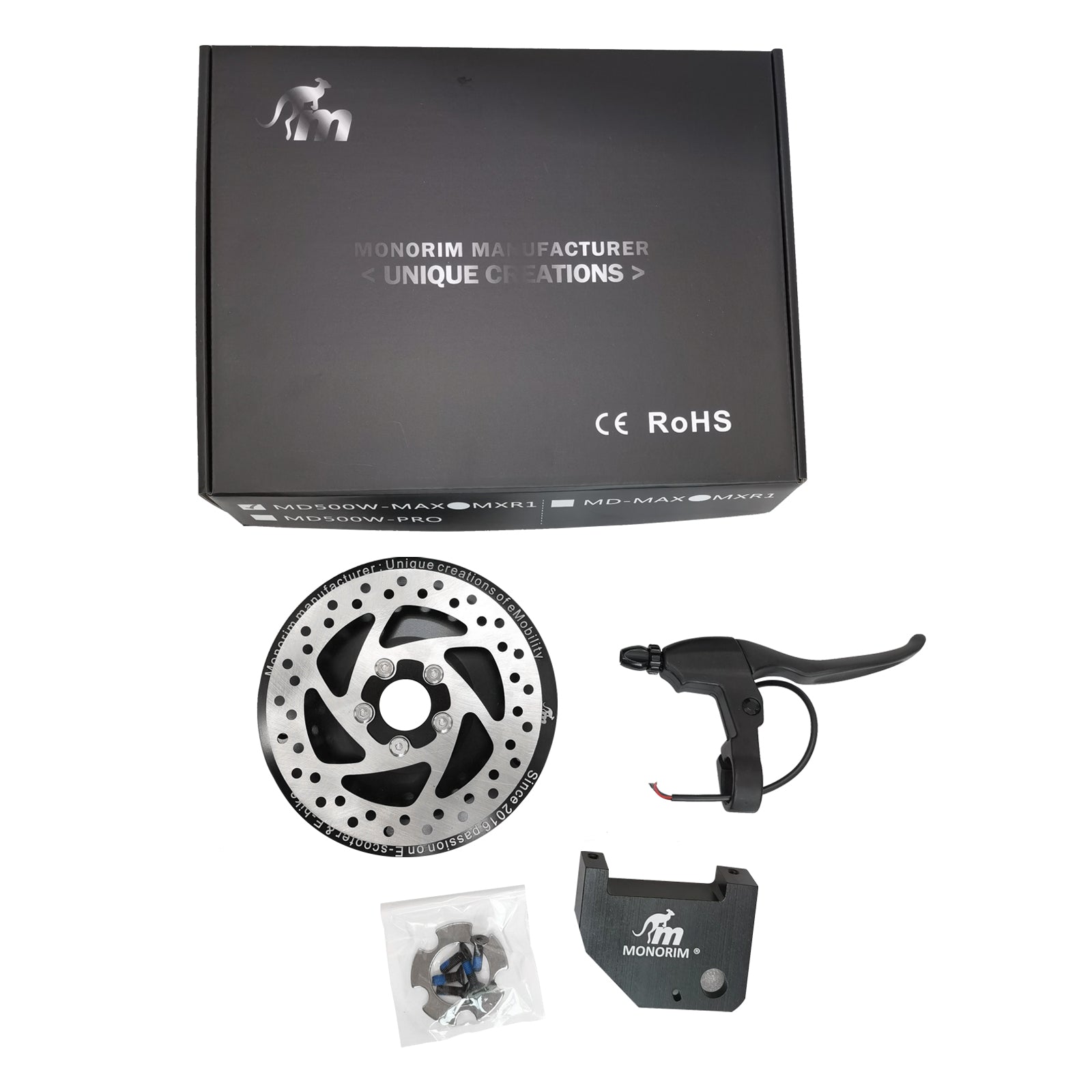 - Incluye: soporte de pinza de freno, maneta derecha y tapa de motor con disco de 120mm.